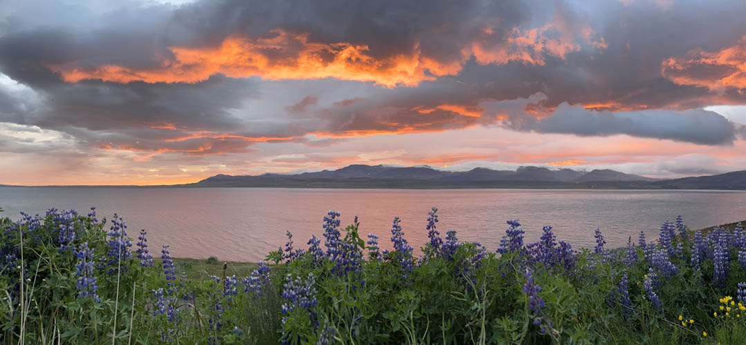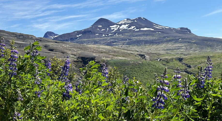 Botnssúlur (1.095 m) with arctic lupinias in the foreground