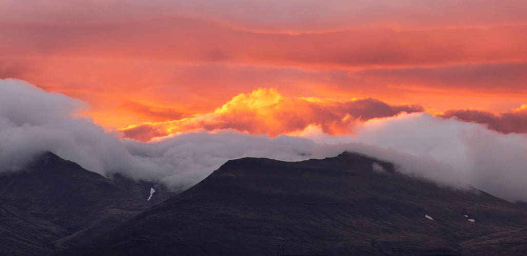 Sunset over Hvalfjörður seen from Villa Fjordblick's terrasse