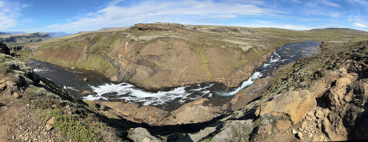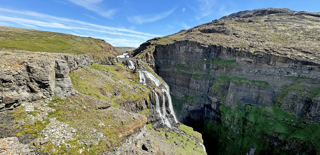 View over the upper reaches of Glymur waterfall