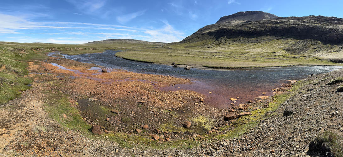 Riverbed colored red by iron oxide